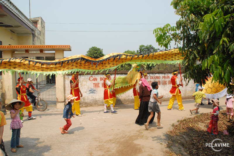 Vous cherchez et voyez des enfants qui vous invitent à les suivre pour rejoindre la procession d’un dragon.