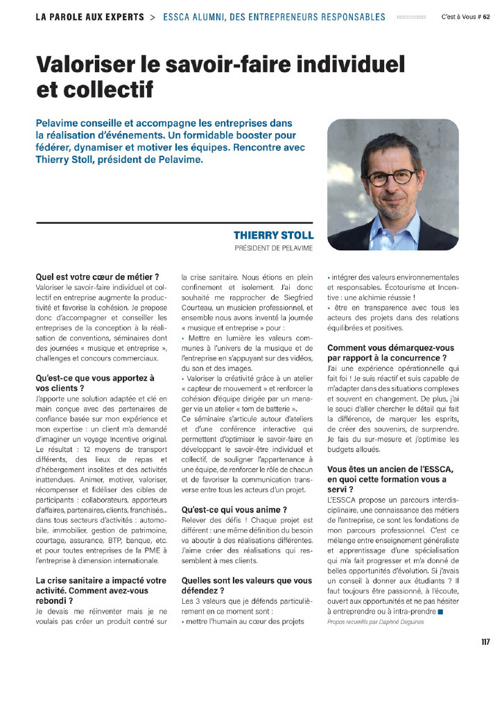 https://www.nxtbook.fr/newpress/MEDEF-Paris/C_EST_A_VOUS-2111_62/index.php#/p/CouverturePELAVIME : consultant. L'incentive : générateur de business
